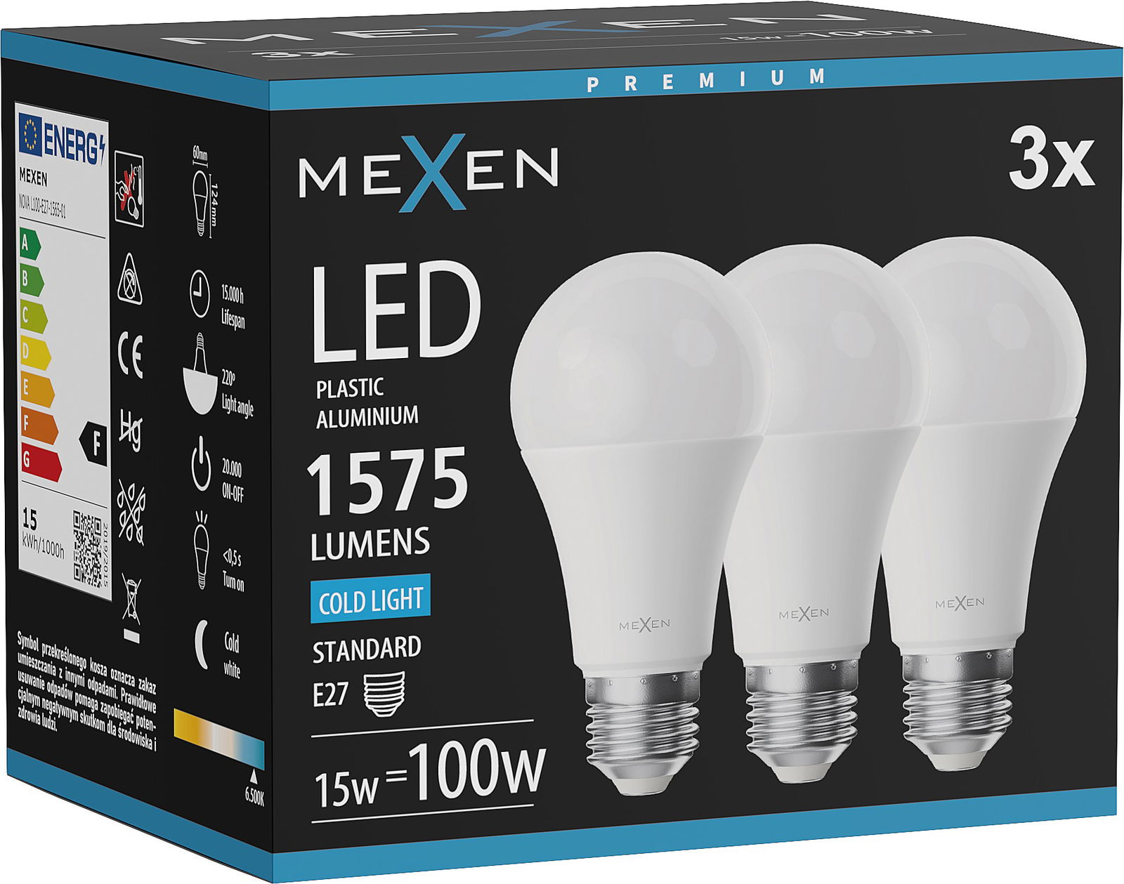 Mexen Nova 3x Bec LED E27, A60, 15W, Rece - 6500K, 1575 lm - L100-E27-1565-01x03