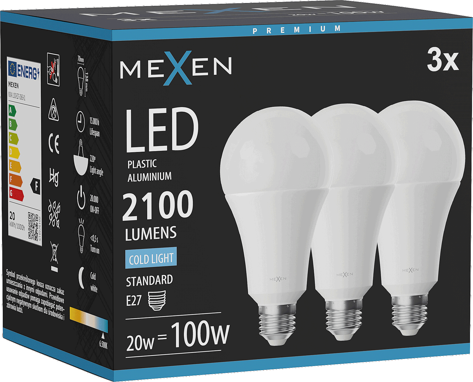 Mexen Nova 3x Bec LED E27, A70, 20W, Rece - 6500K, 2100 lm - L100-E27-2065-01x03