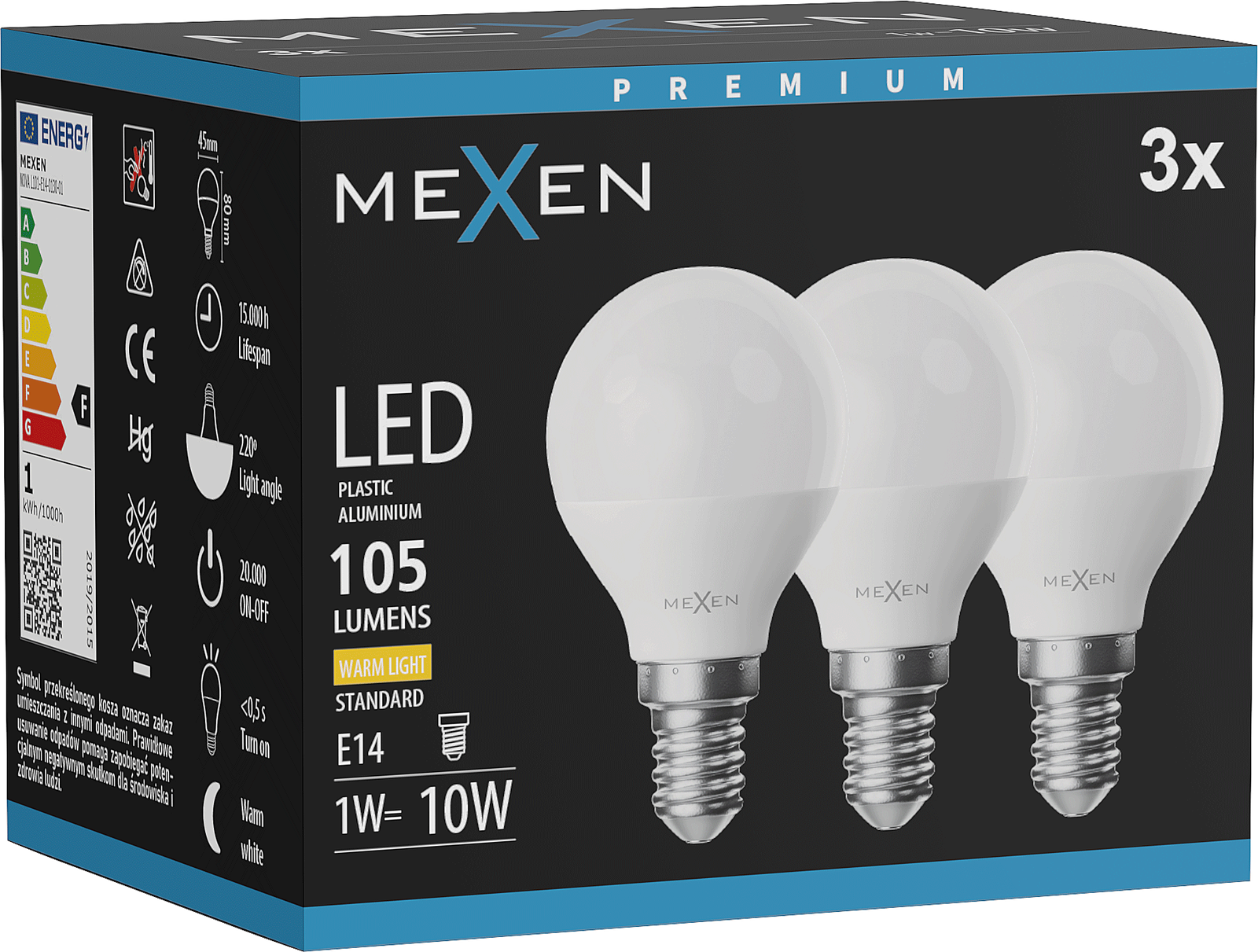 Mexen Nova 3x Bec LED E14, G45, 1W, Cald - 3000K, 105 lm - L101-E14-0130-01x03