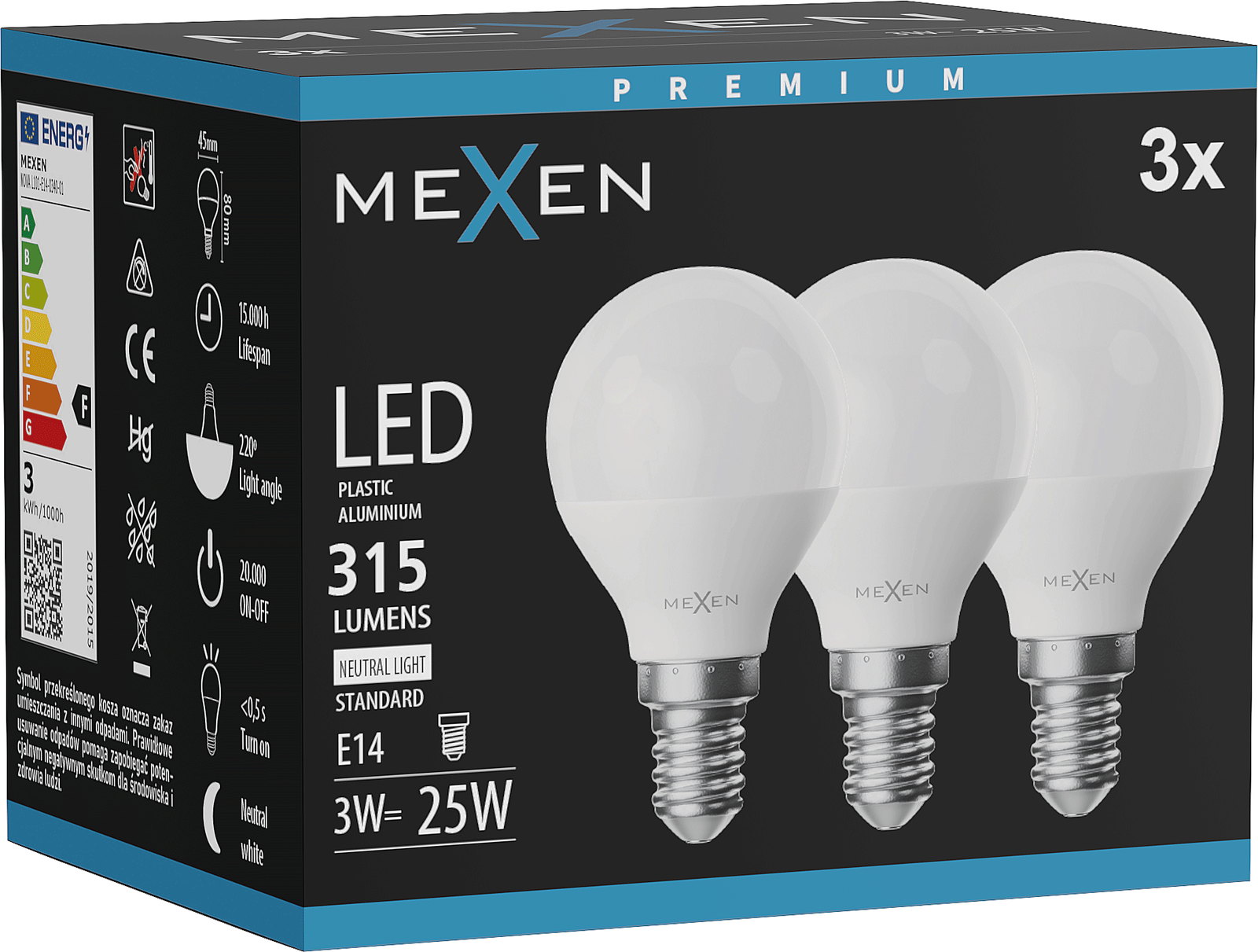 Mexen Nova 3x Beca LED E14, G45, 3W, Neutru - 4000K, 315 lm - L101-E14-0340-01x03