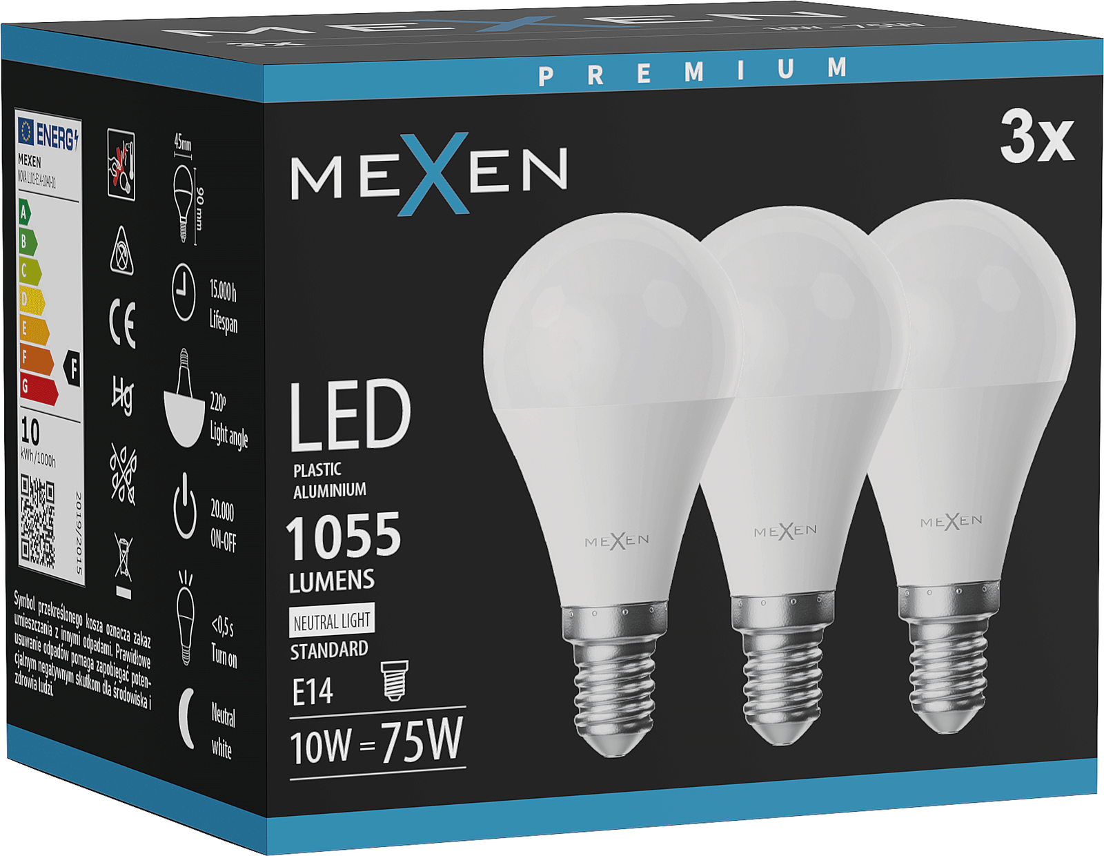 Mexen Nova 3x Bec cu LED E14, G45, 10W, Neutră - 4000K, 1055 lm - L101-E14-1040-01x03
