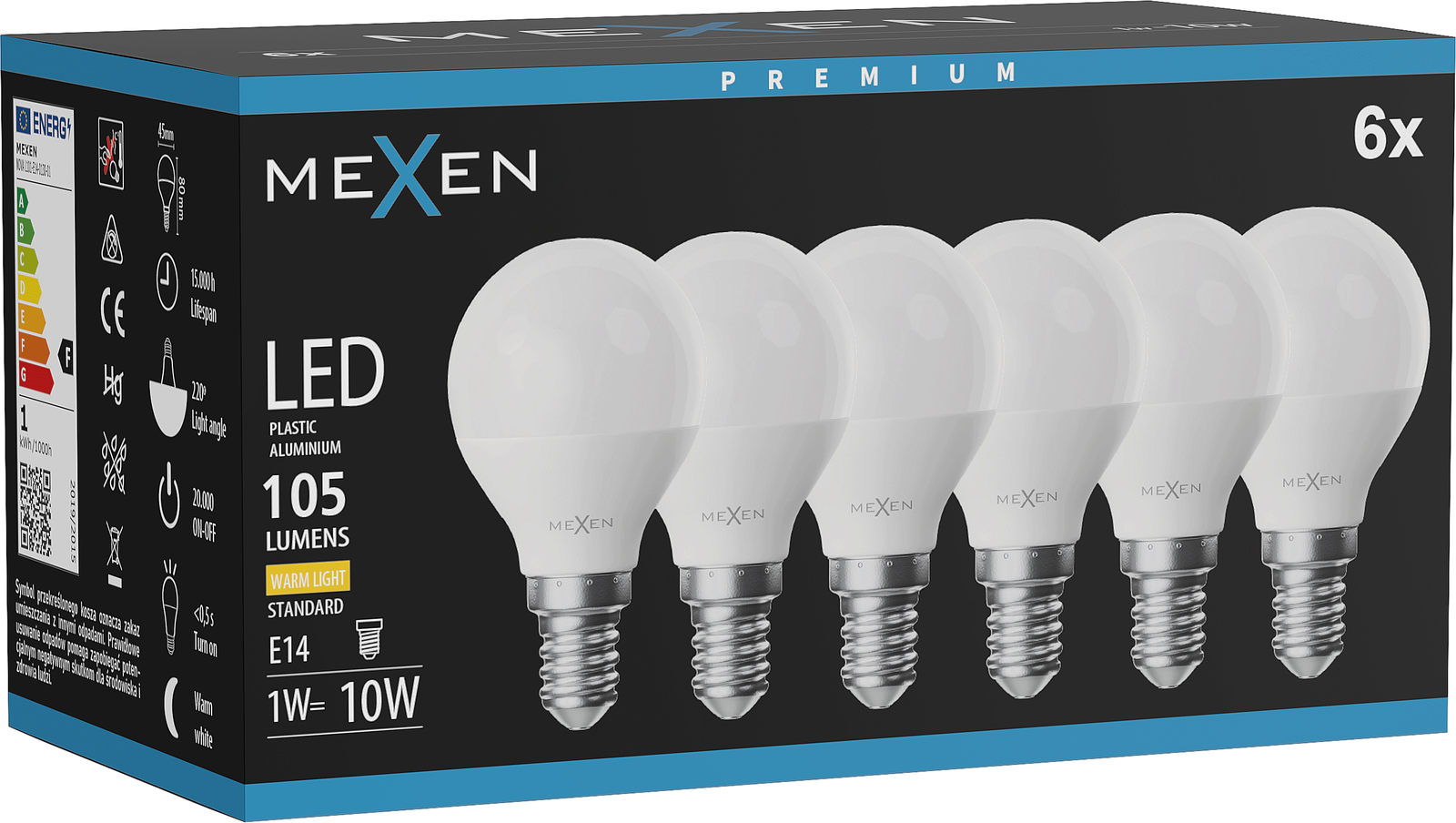 Mexen Nova 6x Bec LED E14, G45, 1W, Caldă - 3000K, 105 lm - L101-E14-0130-01x06