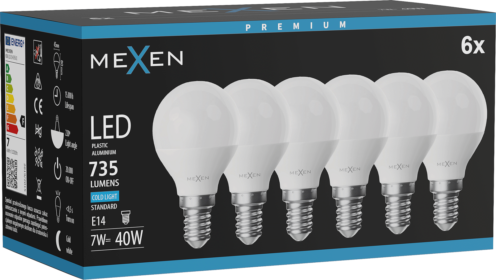Mexen Nova 6x Bec LED E14, G45, 7W, Rece - 6500K, 735 lm - L101-E14-0765-01x06