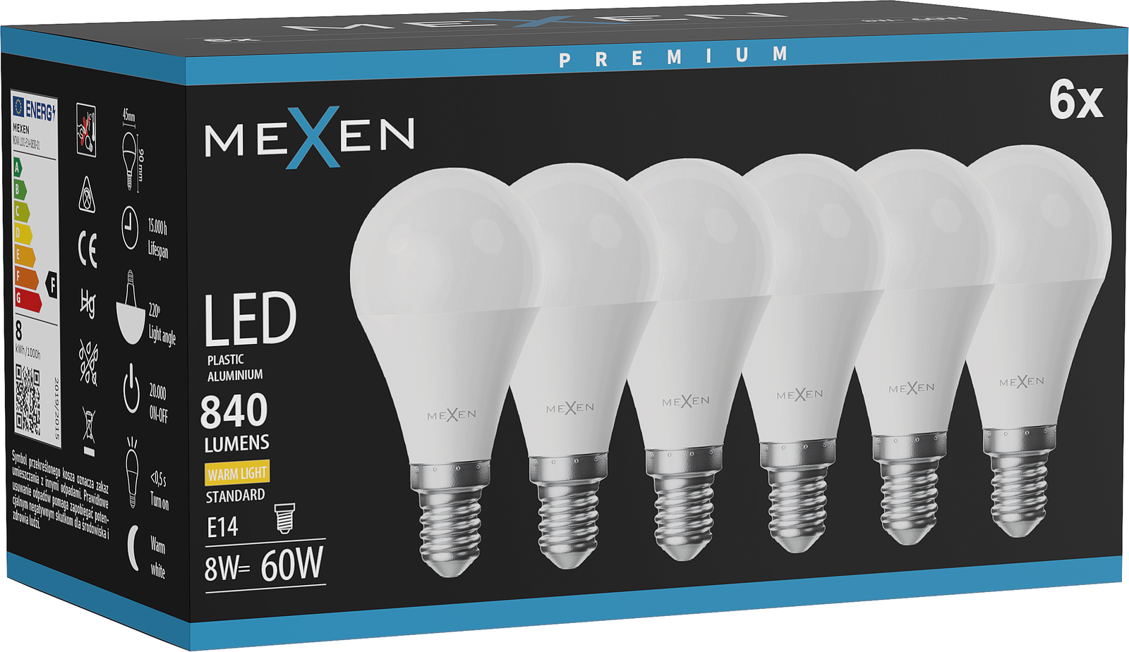 Mexen Nova 6x Bec LED E14, G45, 8W, Caldă - 3000K, 840 lm - L101-E14-0830-01x06