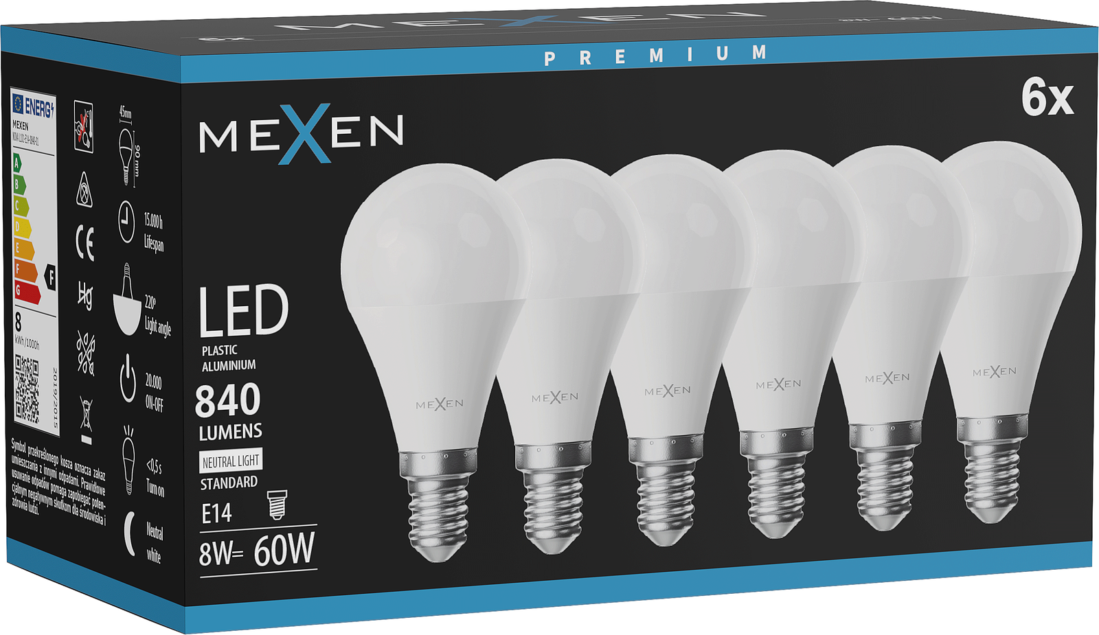 Mexen Nova 6x Bec LED E14, G45, 8W, Neutru - 4000K, 840 lm - L101-E14-0840-01x06
