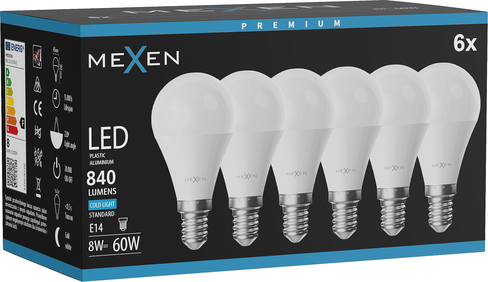 Mexen Nova 6x Bec LED E14, G45, 8W, Rece - 6500K, 840 lm - L101-E14-0865-01x06