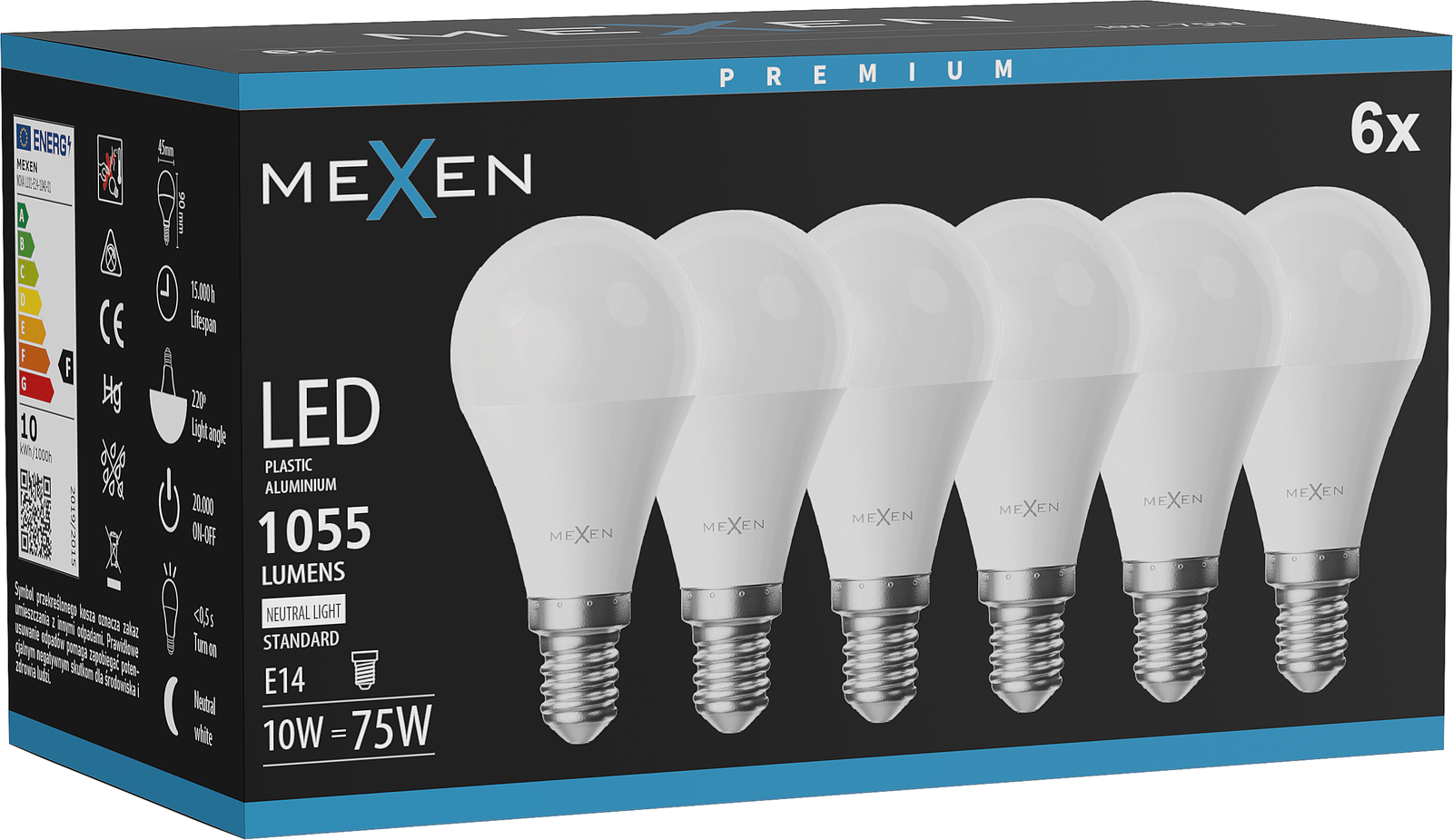 Mexen Nova 6x Bec LED E14, G45, 10W, Neutru - 4000K, 1055 lm - L101-E14-1040-01x06