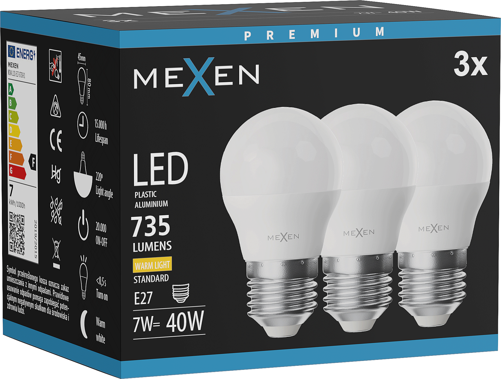 Mexen Nova 3x Bec LED E27, G45, 7W, Caldă - 3000K, 735 lm - L101-E27-0730-01x03