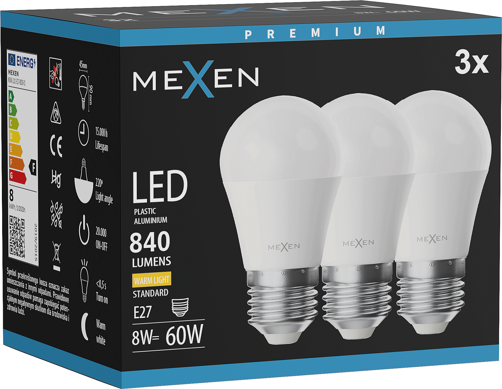Mexen Nova 3x Bec LED E27, G45, 8W, Caldă - 3000K, 840 lm - L101-E27-0830-01x03