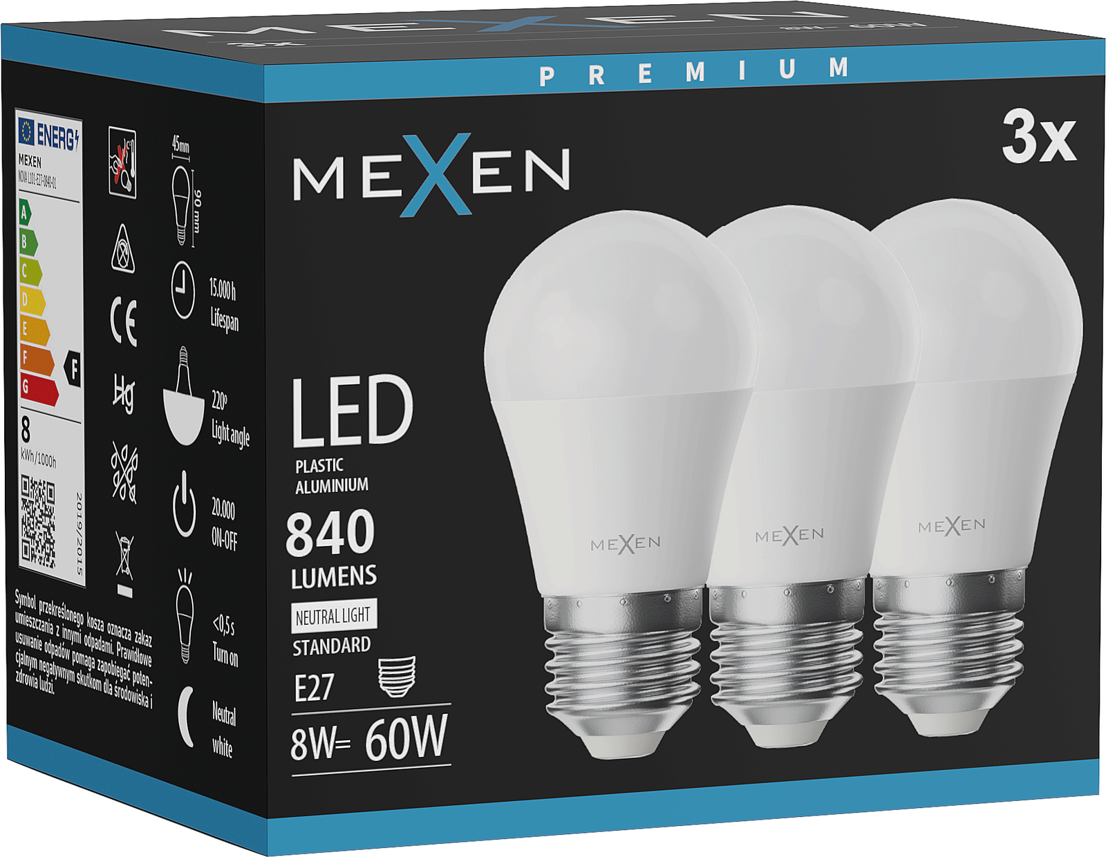 Mexen Nova 3x Bec LED E27, G45, 8W, Neutră - 4000K, 840 lm - L101-E27-0840-01x03