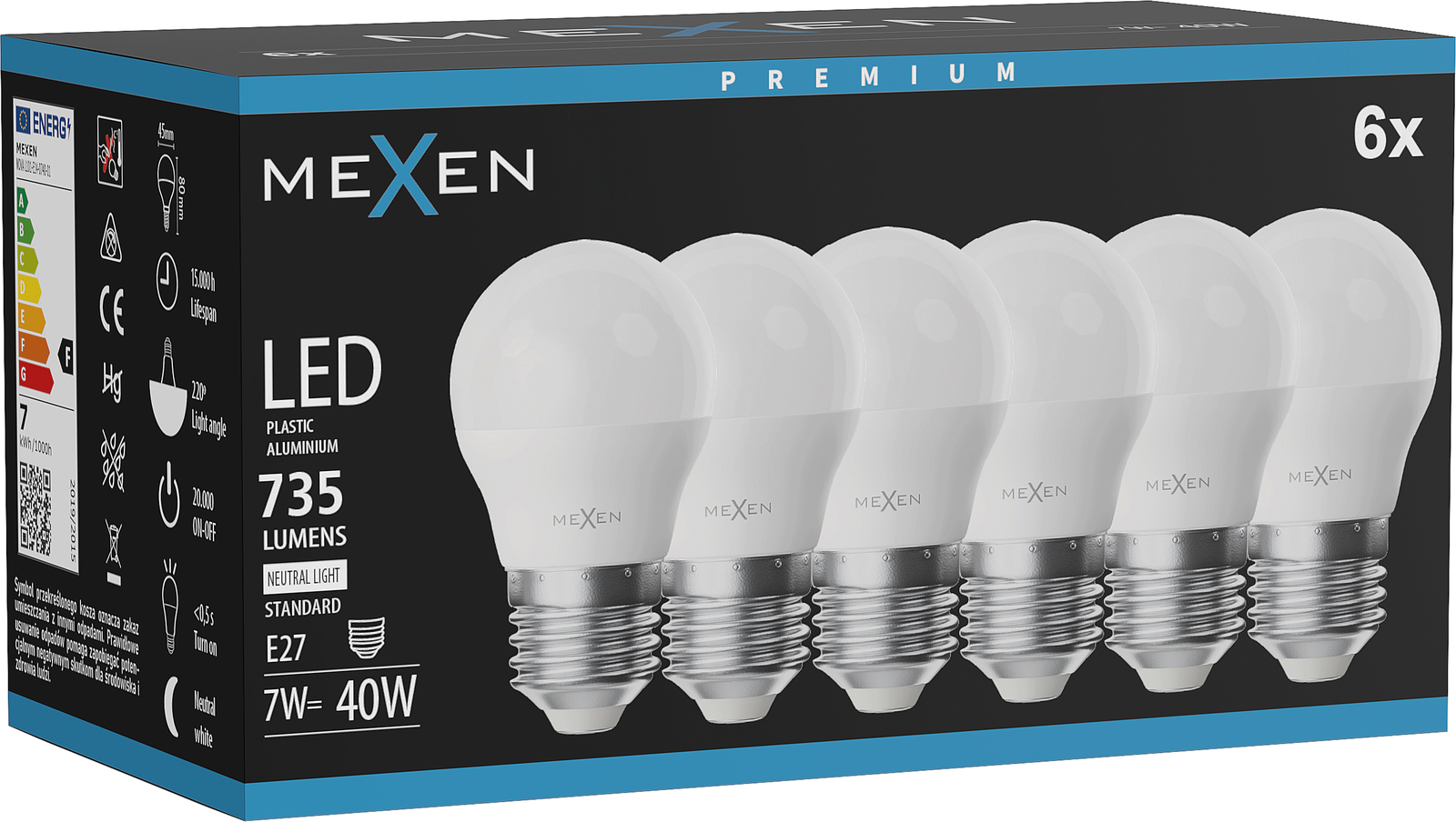 Mexen Nova 6x Bec LED E27, G45, 7W, Neutru - 4000K, 735 lm - L101-E27-0740-01x06