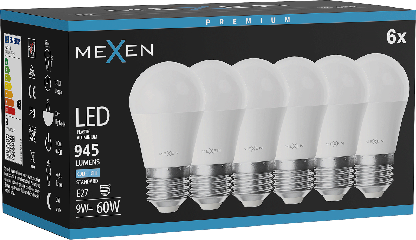 Mexen Nova 6x Bec LED E27, G45, 9W, Rece - 6500K, 945 lm - L101-E27-0965-01x06