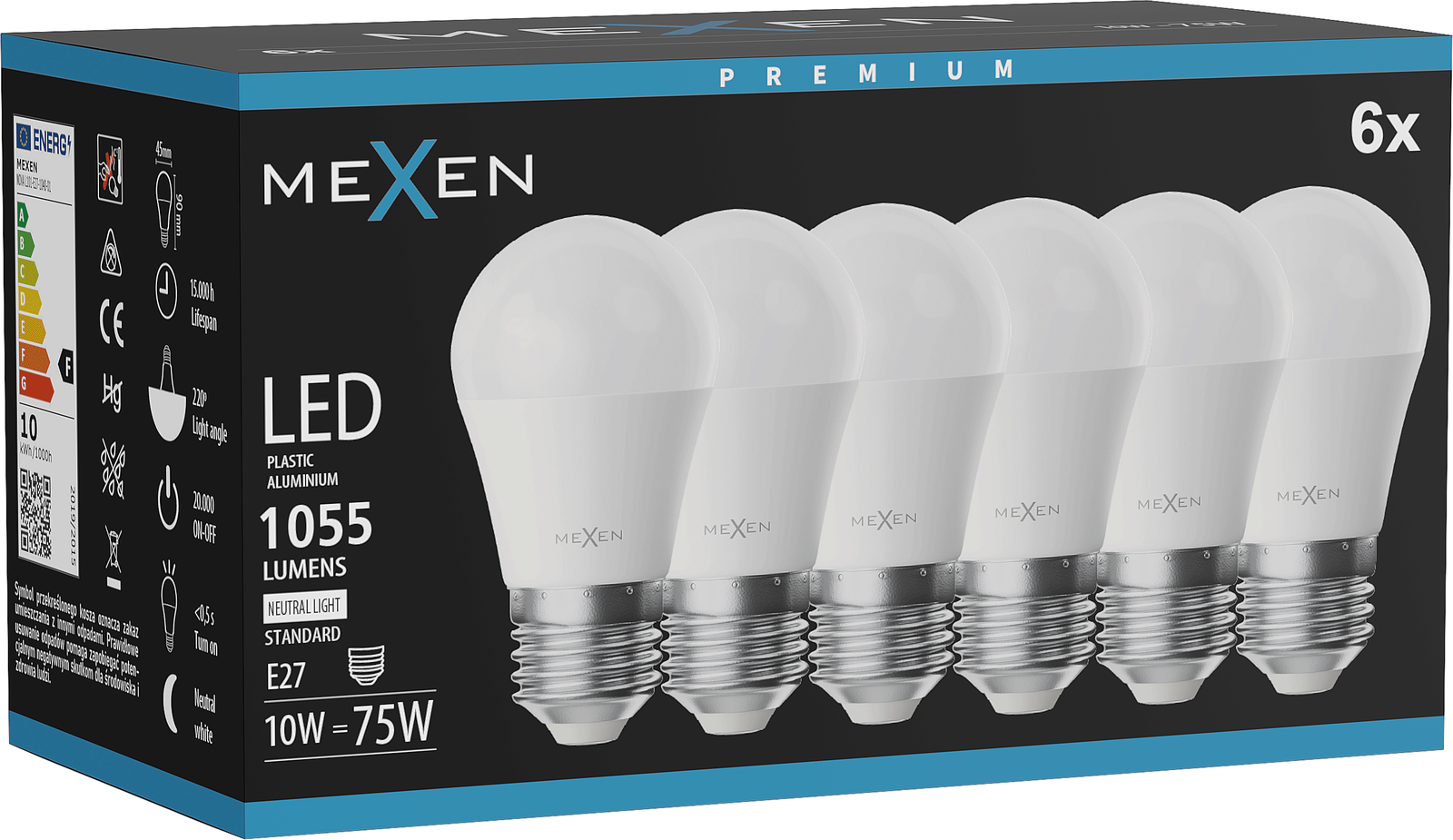 Mexen Nova 6x Bec LED E27, G45, 10W, Neutră - 4000K, 1055 lm - L101-E27-1040-01x06