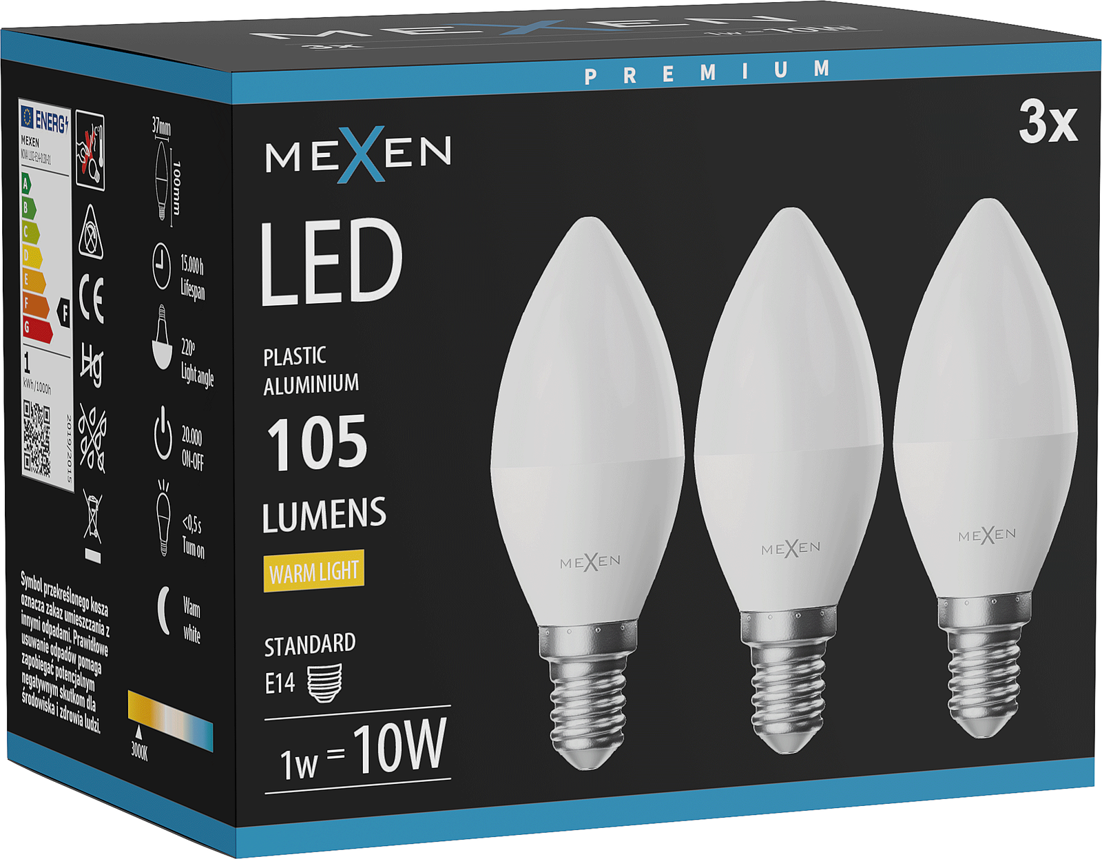 Mexen Nova 3x Bec LED E14, C37, 1W, Neutru - 4000K, 105 lm - L102-E14-0140-01x03