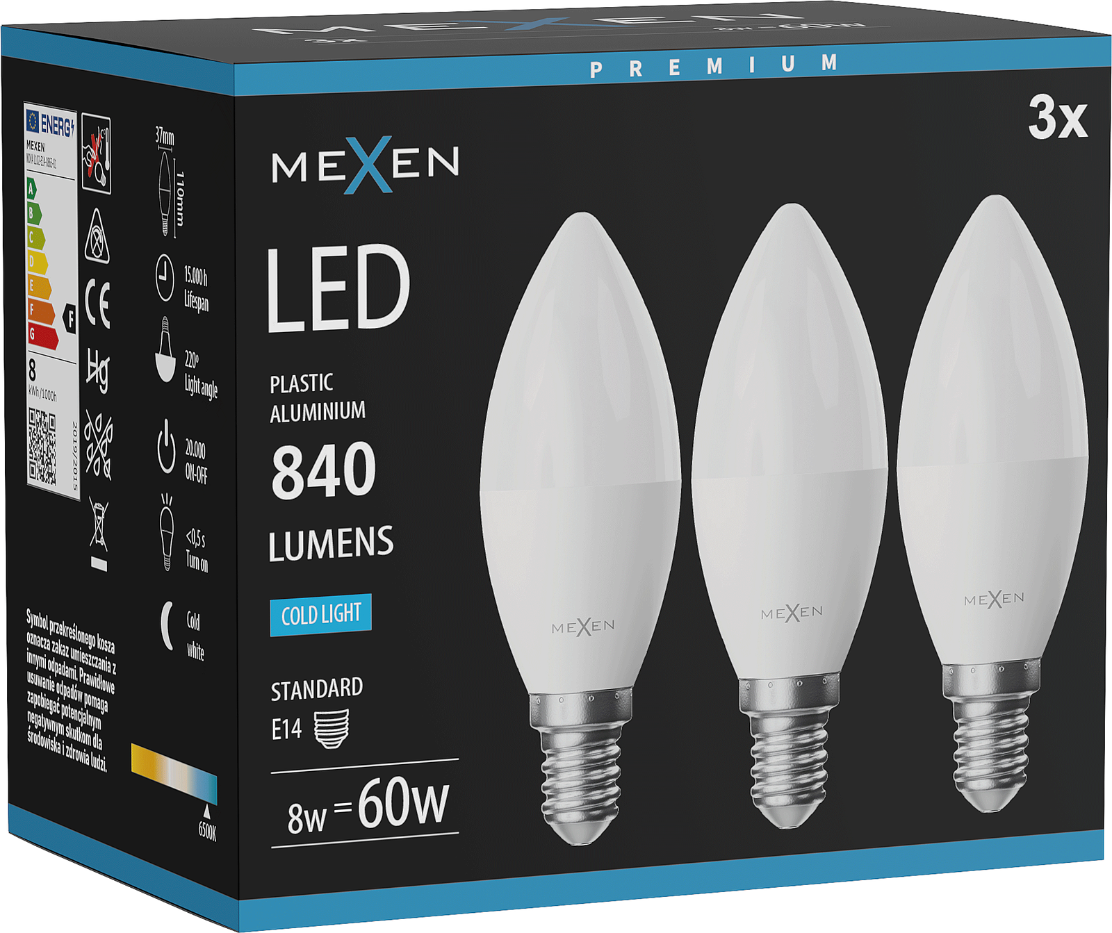 Mexen Nova 3x Bec LED E14, C37, 8W, Rece - 6500K, 840 lm - L102-E14-0865-01x03