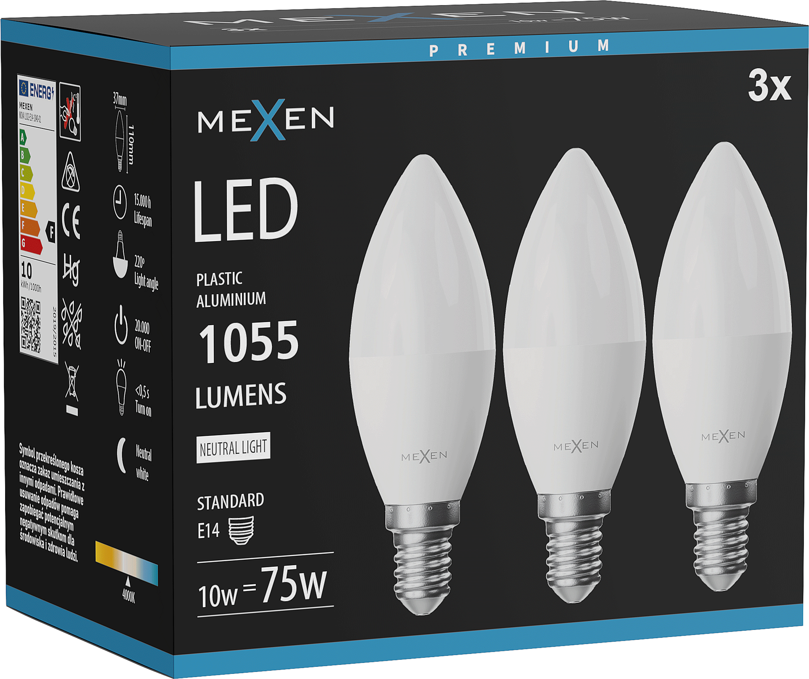 Mexen Nova 3x Bec LED E14, C37, 10W, Neutru - 4000K, 1055 lm - L102-E14-1040-01x03
