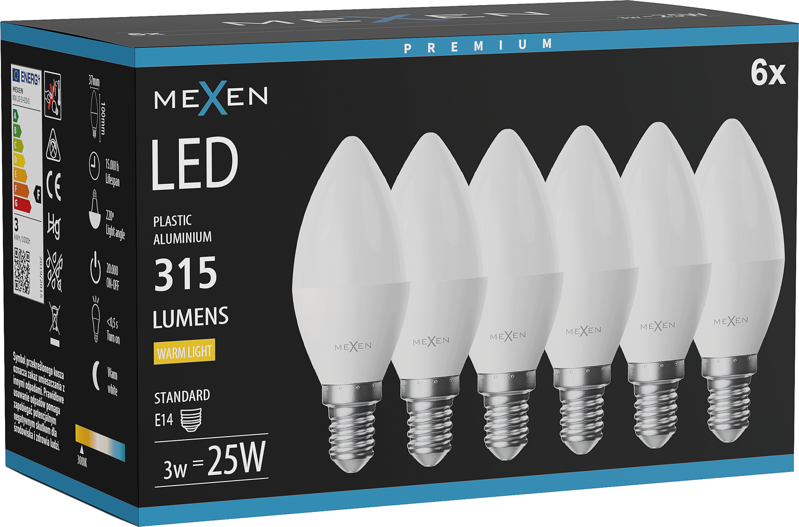 Mexen Nova 6x Bec LED E14, C37, 3W, Caldă - 3000K, 315 lm - L102-E14-0330-01x06