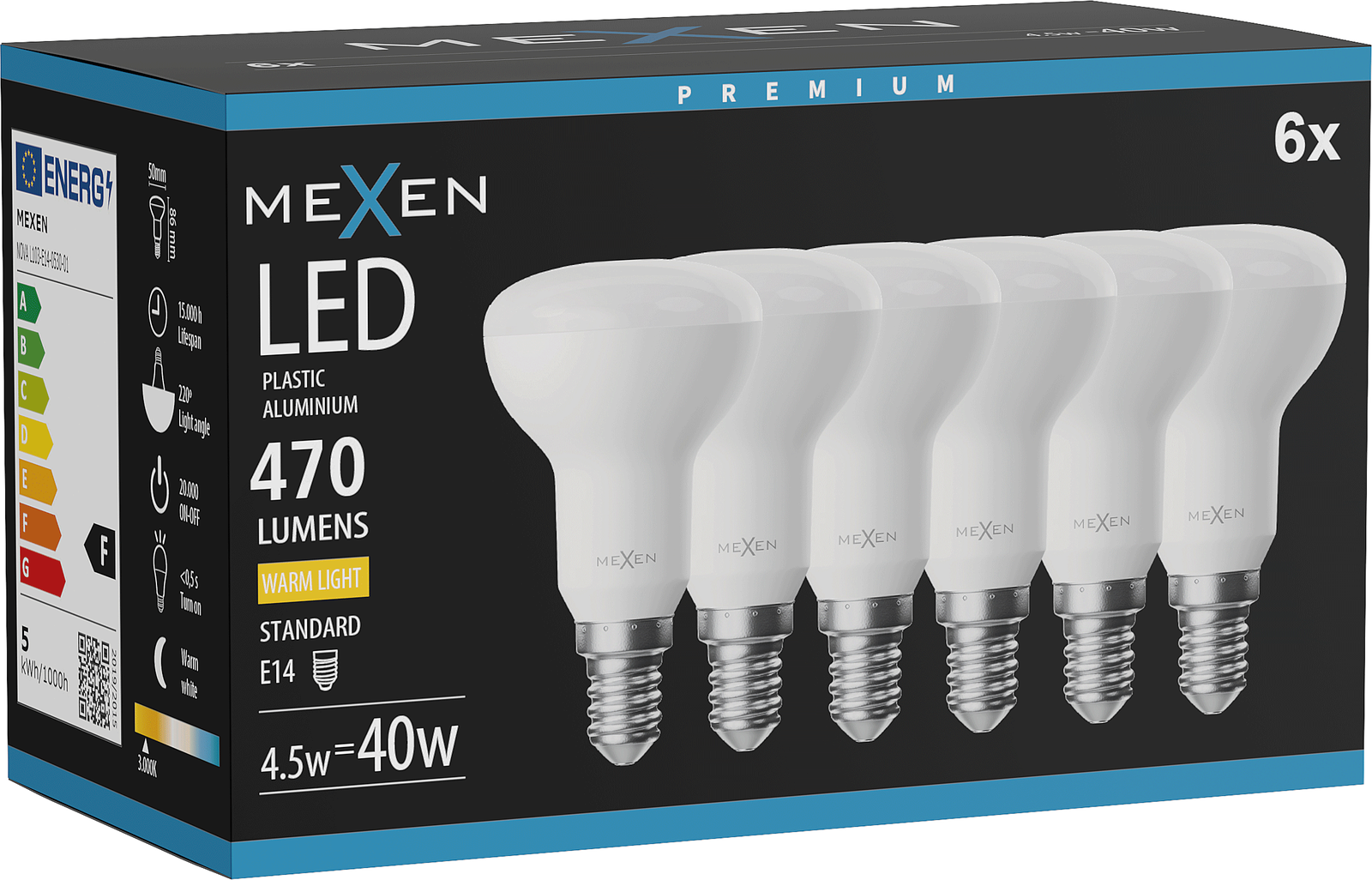 Mexen Nova 6x Bec de lampă LED E14, R50, 4,5W, Caldă - 3000K, 470 lm - L103-E14-0530-01x06