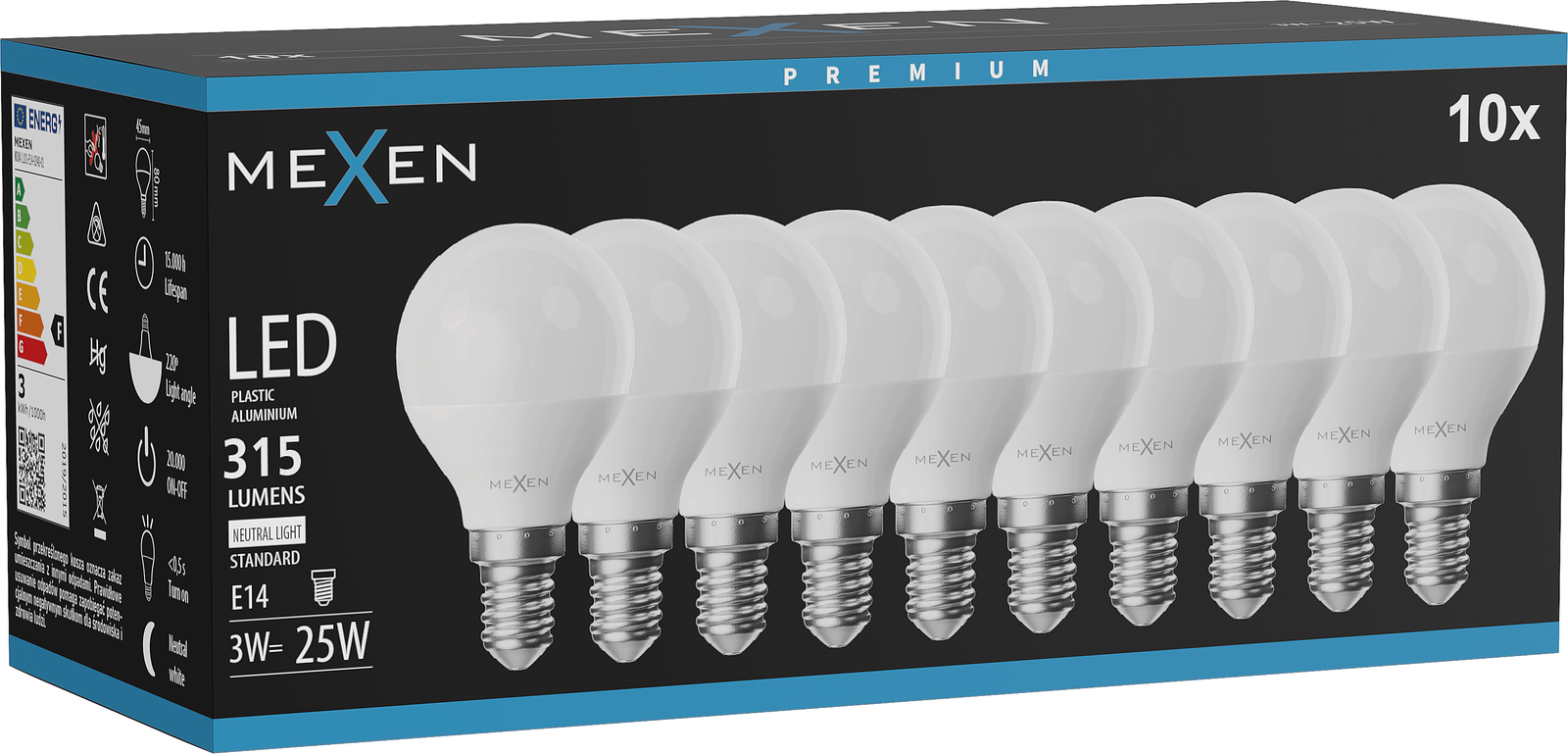 Mexen Nova 10x Bec LED E14, G45, 3W, Neutru - 4000K, 315 lm - L101-E14-0340-01x10