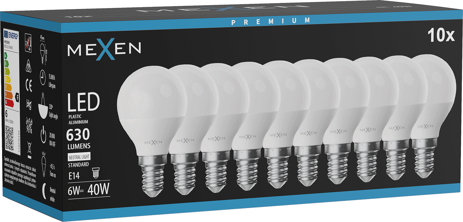 Mexen Nova 10x Bec LED E14, G45, 6W, Neutră - 4000K, 630 lm - L101-E14-0640-01x10