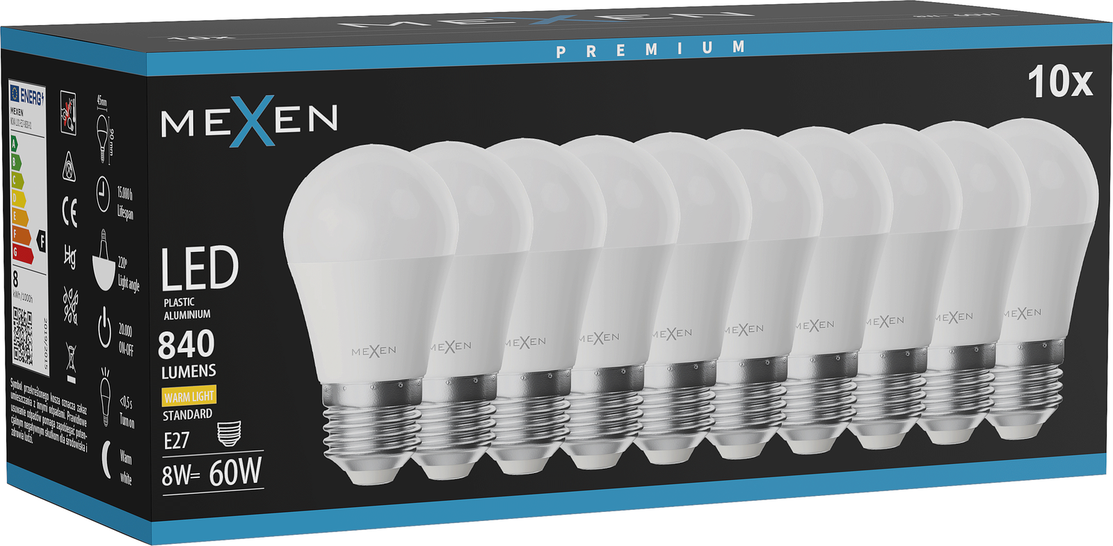 Mexen Nova 10x Bec LED E27, G45, 8W, Cald - 3000K, 840 lm - L101-E27-0830-01x10