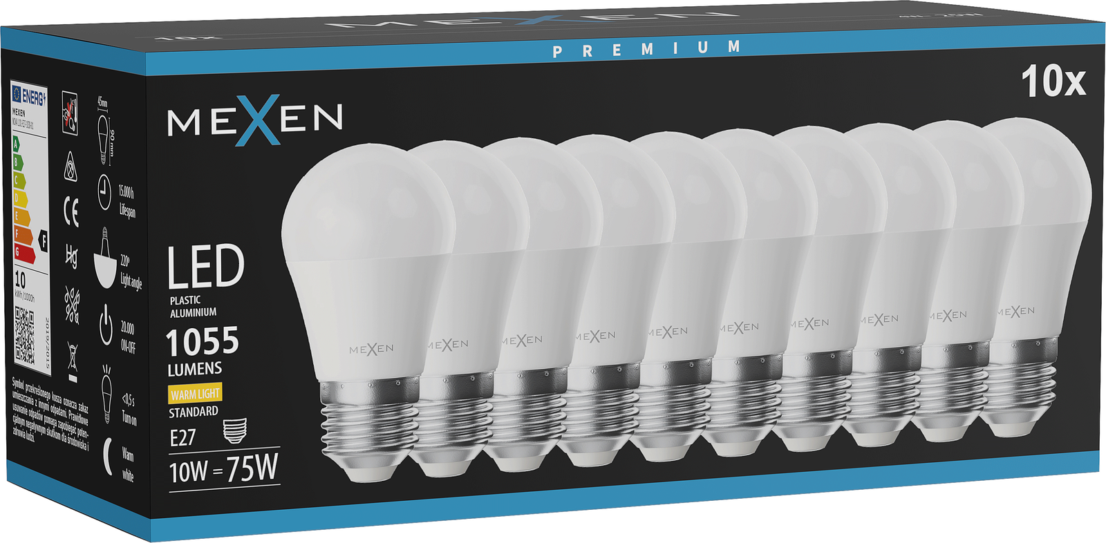 Mexen Nova 10x Bec cu LED E27, G45, 10W, Cald - 3000K, 1055 lm - L101-E27-1030-01x10