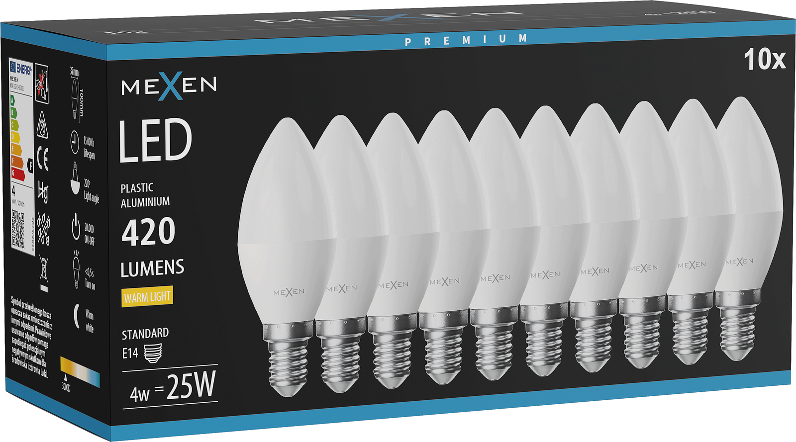 Mexen Nova 10x Bec LED E14, C37, 4W, Cald - 3000K, 420 lm - L102-E14-0430-01x10
