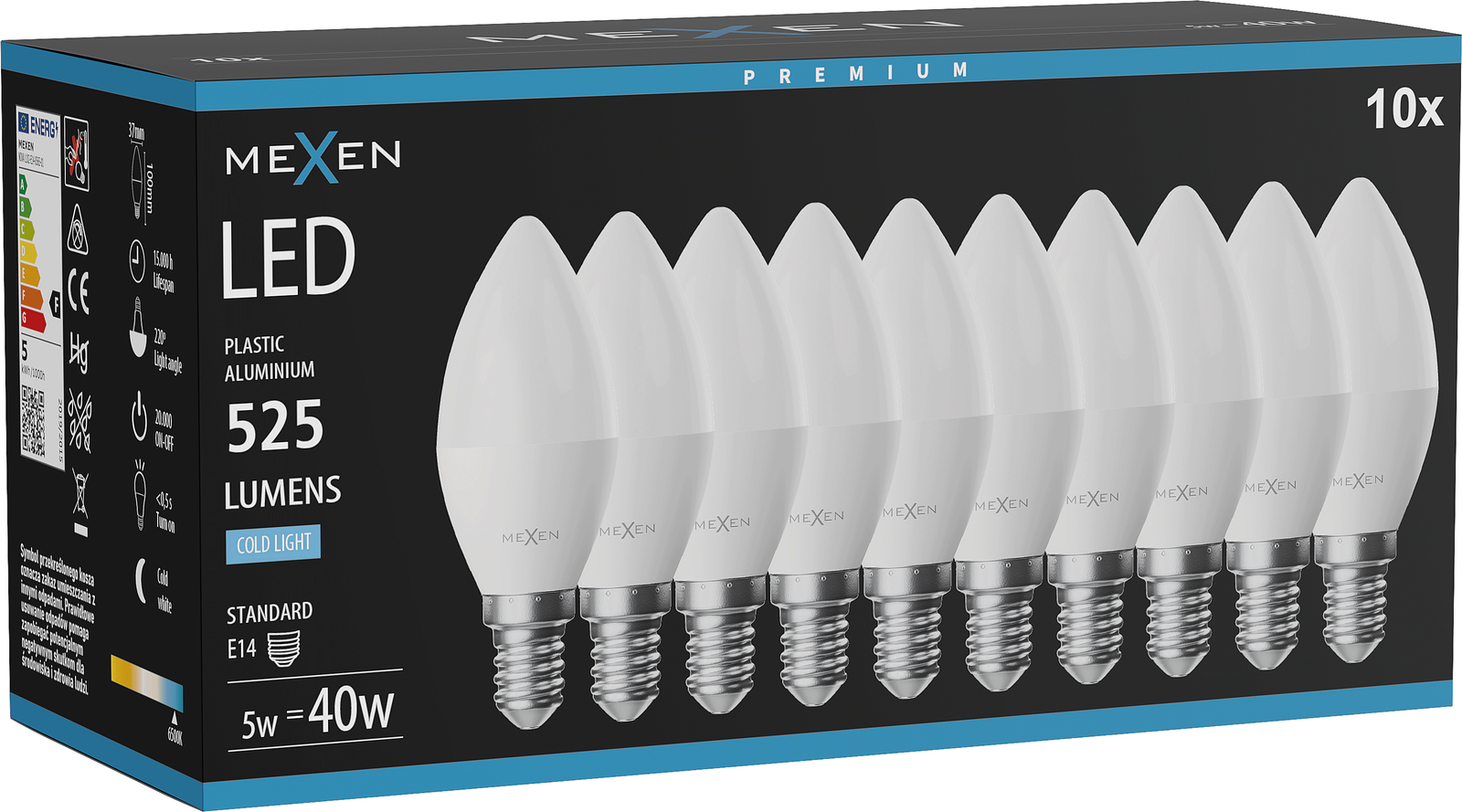 Mexen Nova 10x Bec LED E14, C37, 5W, Rece - 6500K, 525 lm - L102-E14-0565-01x10