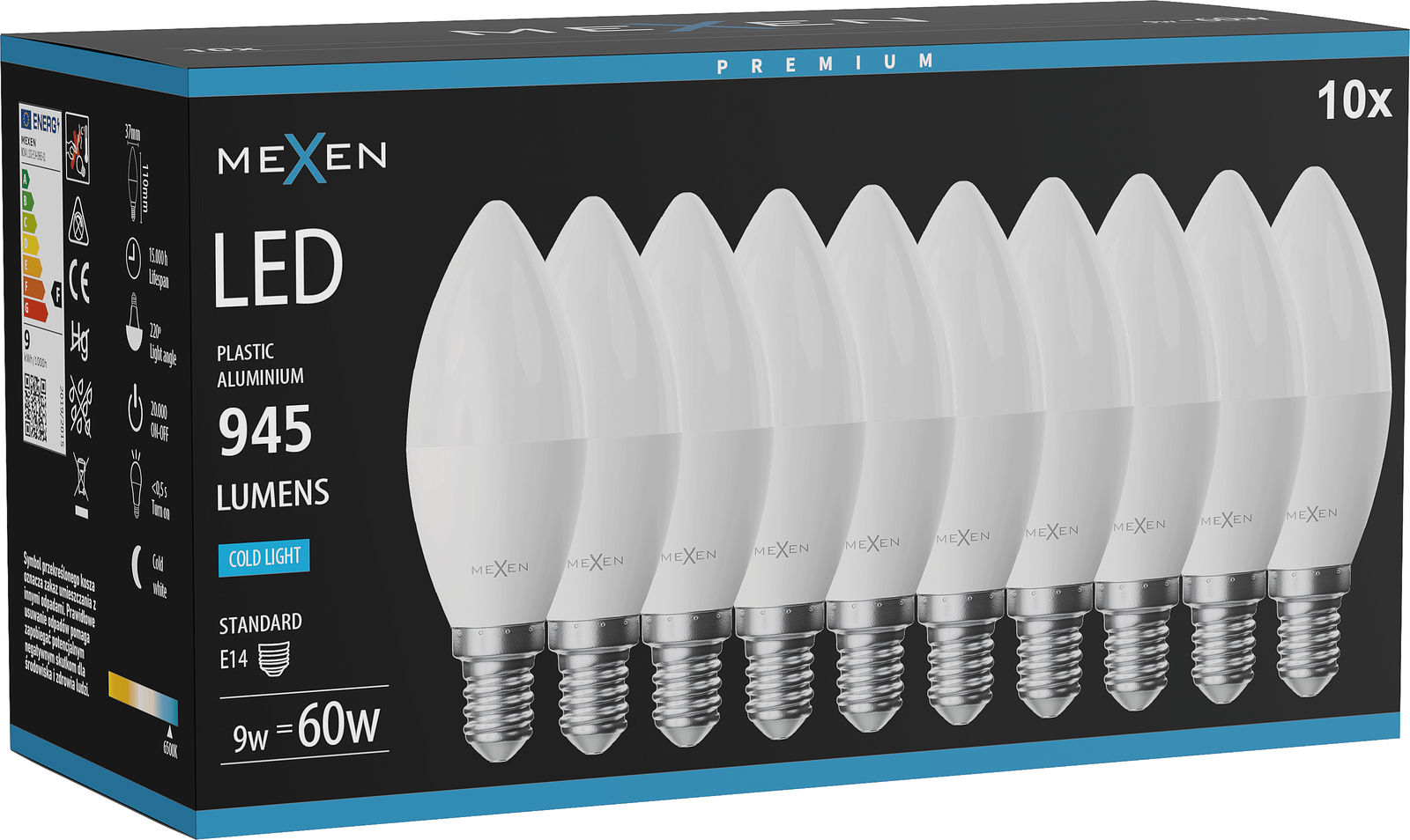 Mexen Nova 10x Bec LED E14, C37, 9W, Rece - 6500K, 945 lm - L102-E14-0965-01x10