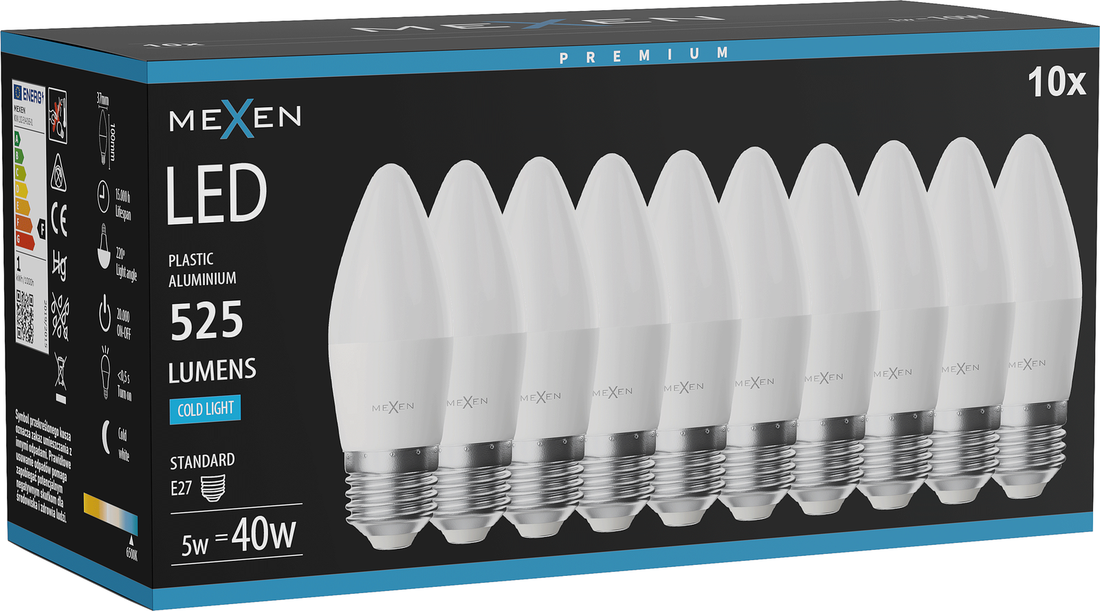 Mexen Nova 10x Bec LED E27, C37, 5W, Rece - 6500K, 525 lm - L102-E27-0565-01x10