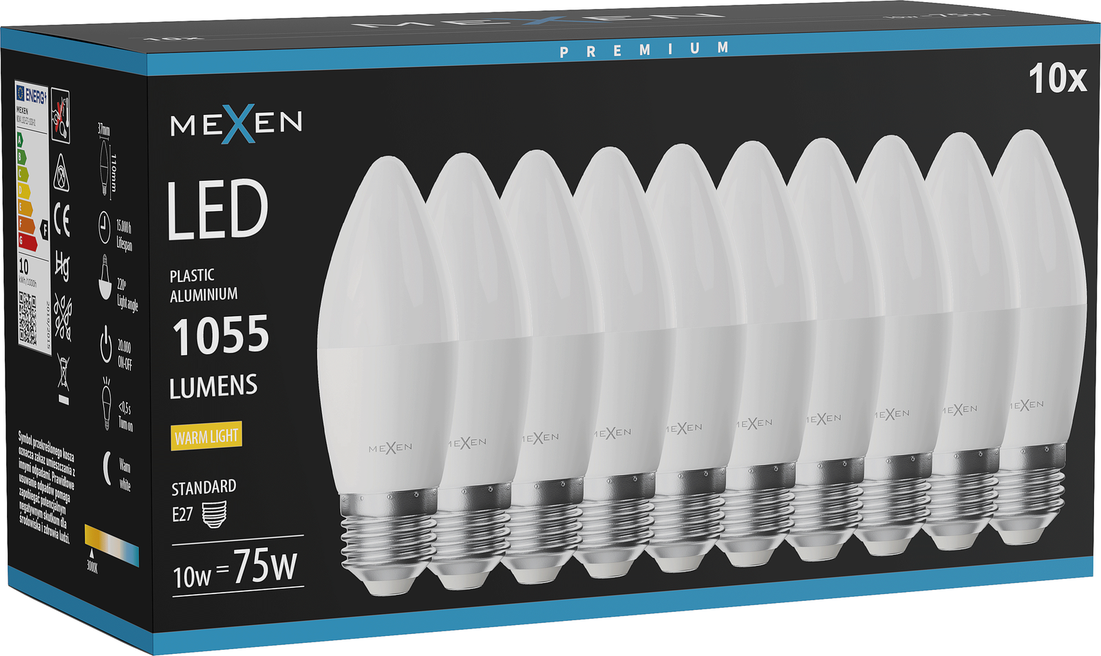 Mexen Nova 10x Bec LED E27, C37, 10W, Cald - 3000K, 1055 lm - L102-E27-1030-01x10