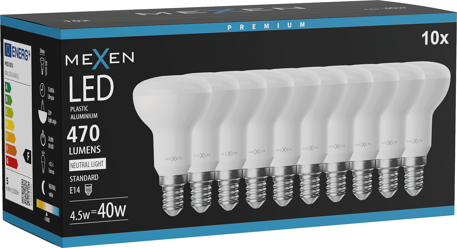 Mexen Nova 10x Bec LED E14, R50, 4,5W, Neutru - 4000K, 470 lm - L103-E14-0540-01x10
