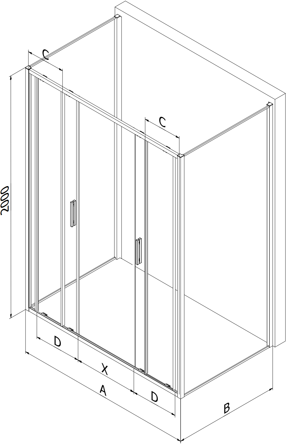 Dimensiune: 130x70 cm (uși 130 cm, pereți 70 cm)