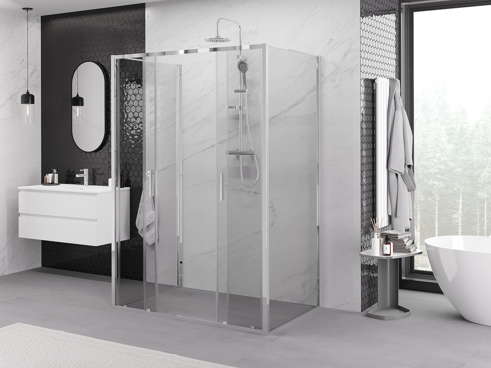 Mexen Rio cabină de duș pătrată 90 x 90 cm, transparentă, neagră - 860-090-090-70-00