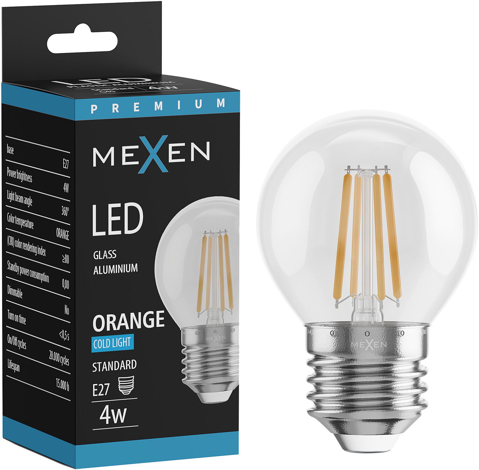 Mexen Vintis Bec LED filament E27, G45, 4W, 55 lm, portocaliu - L156-E27-04XX-48