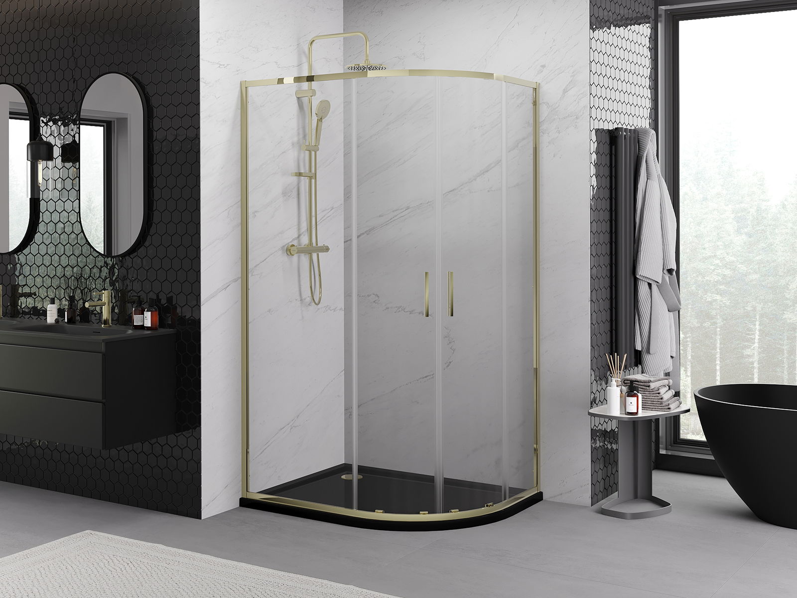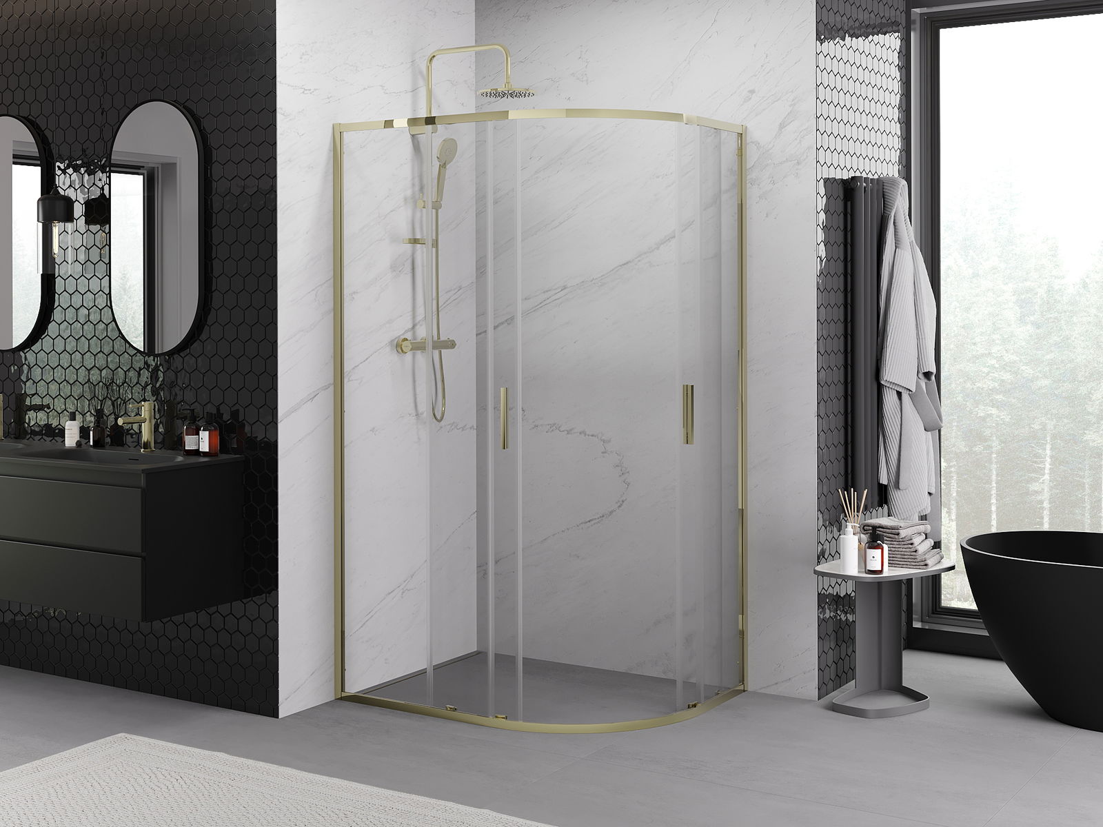 Mexen Exo cabină de duș semirotundă glisantă 120 x 80 cm, transparentă, aurie - 8132-120-080-50-00