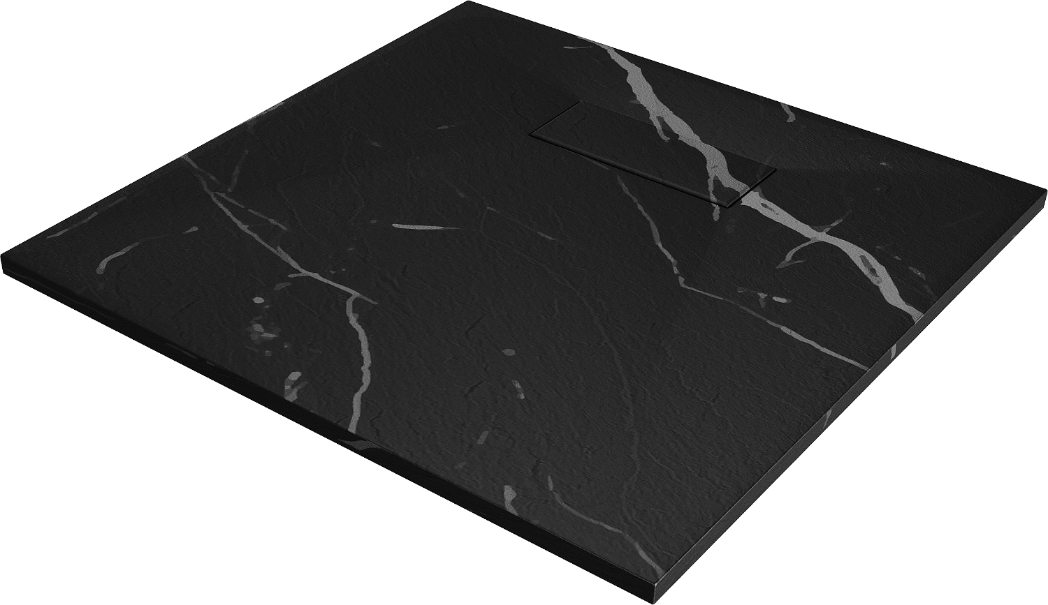 Recepția de duș pătrată Hugo 80 x 80 cm este soluția ideală pentru o baie modernă. Fabricată dintr-un material durabil SMC, se caracterizează prin structura de piatră, conferindu-i un aspect elegant. Înălțimea sa ultrasubțire de 2,6 cm permite montajul ușor în pardoseală sau pe podea. Datorită posibilității de tăiere și rezistenței excelente la lovituri, recepția de duș asigură stabilitate și confort de utilizare. Include un sifon, iar scurgerea cu diametru de 90 mm facilitează evacuarea apei. Piatră neagră este un stil clasic, care se va potrivi în orice decor.