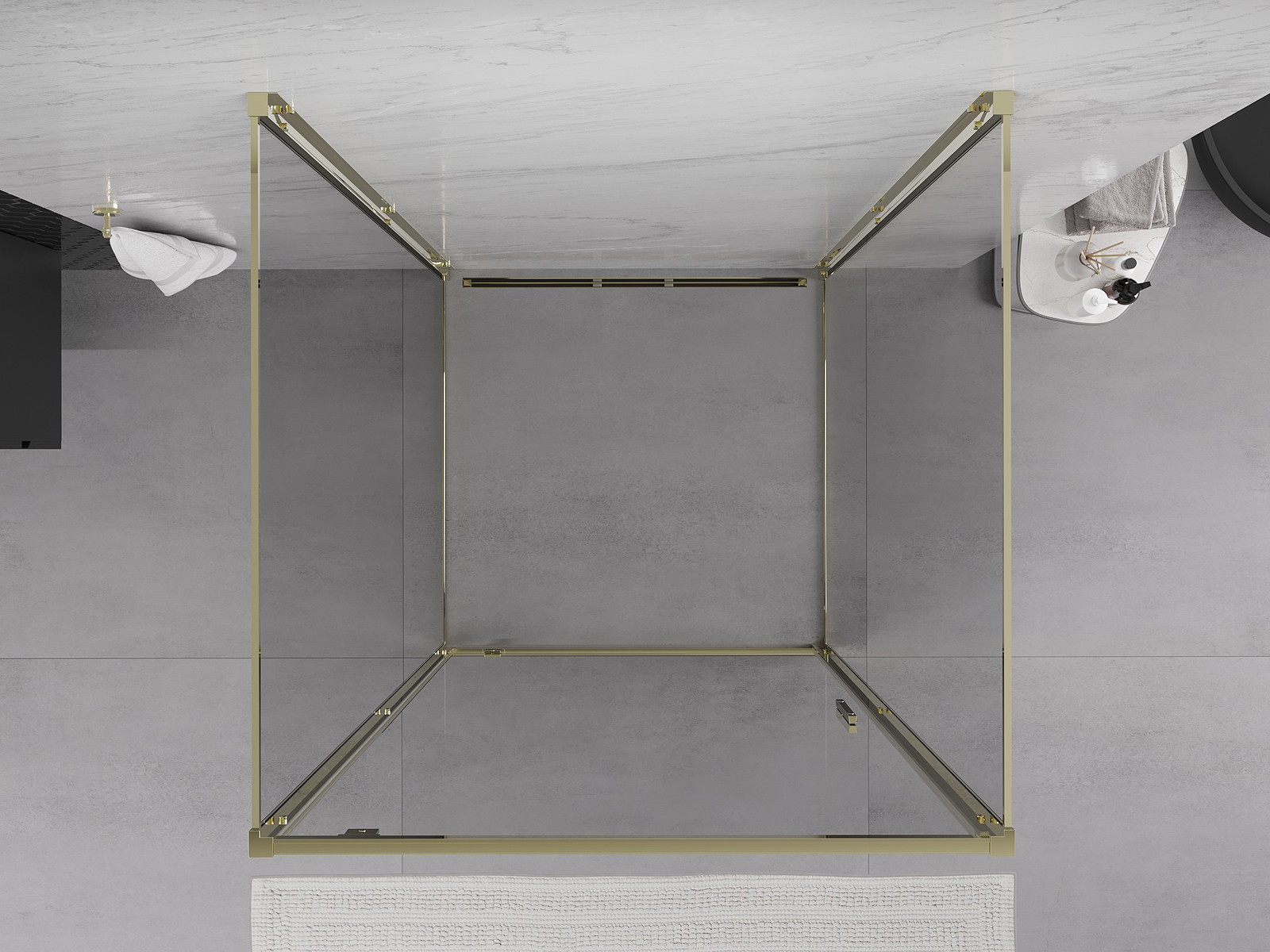 Mexen Exo-3S cabină de duș cu 3 pereți rabatabilă 95 x 95 cm, transparentă, aurie - 8181-095-095-50-00-3S