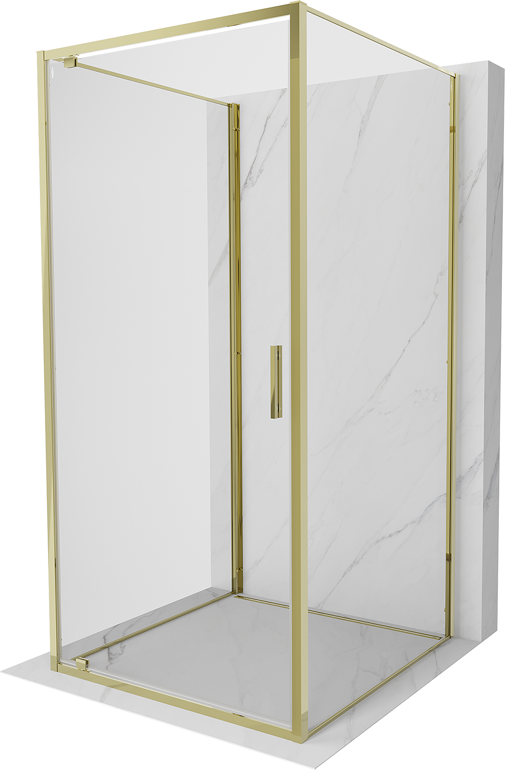 Mexen Exo-3S cabina de duș cu 3 pereți pivotantă 100 x 100 cm, transparentă, aurie - 8181-100-100-50-00-3S
