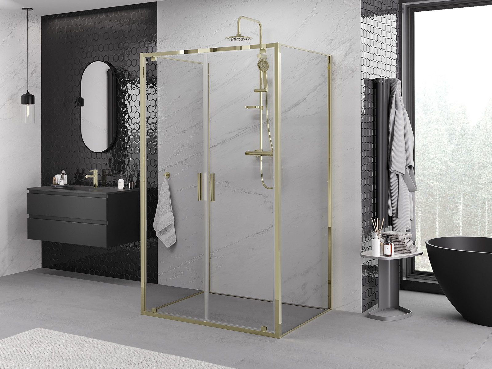 Mexen Exo-3S cabina de duș 3 pereți cu ușă batantă 100 x 110 cm, transparentă, aurie - 8182-100-110-50-00-3S