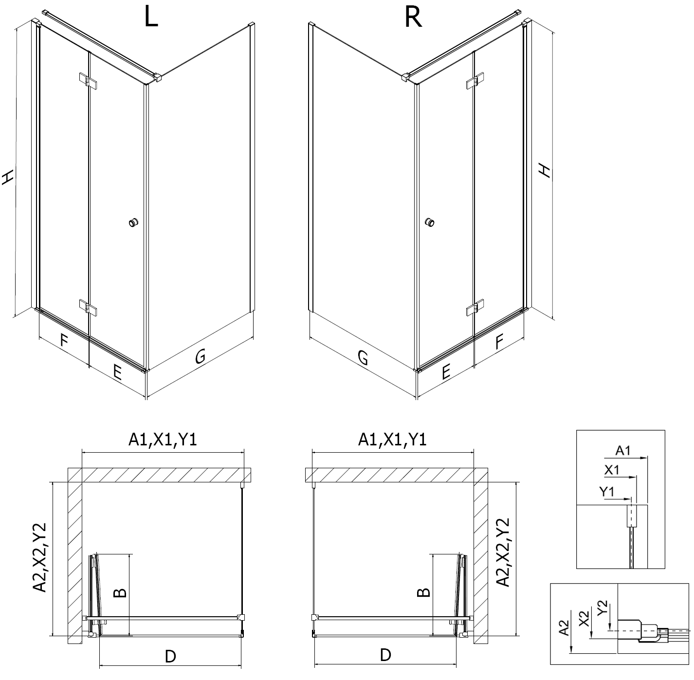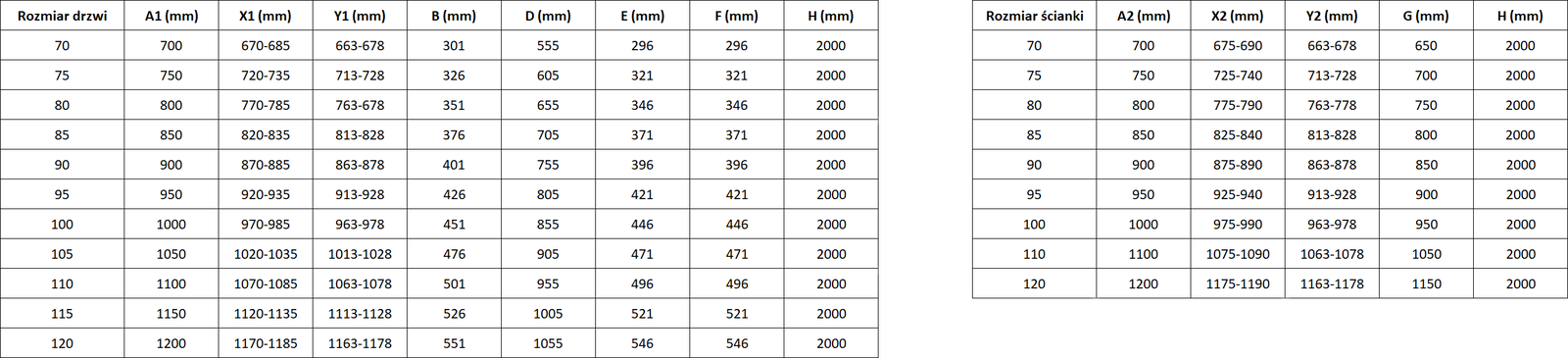 Dimensiune: 80x100 cm (ușă dreaptă 80 cm, perete 100 cm)