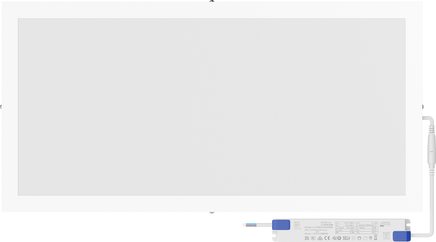 Mexen Brill-S panou LED de tavan montat pe suprafață 60 x 30 cm, 24W, Neutru - 4000K, 3456 lm, alb - L207-060-030-2440-20
