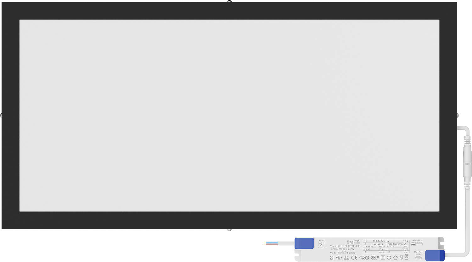 Mexen Brill-S panou LED tavan montat la suprafață 60 x 30 cm, 24W, Neutru - 4000K, 3456 lm, negru - L207-060-030-2440-70