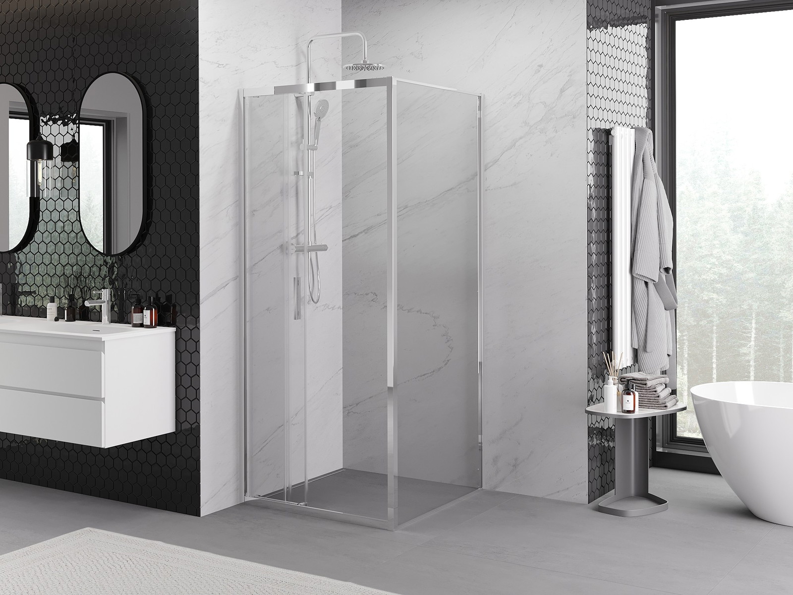 Mexen Rio cabină de duș pătrată 90 x 90 cm, transparentă, neagră - 860-090-090-70-00