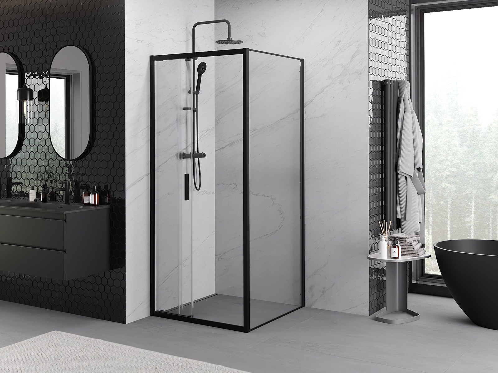 Mexen Exo cabina de duș glisantă 90 x 90 cm, transparentă, neagră - 8153-090-090-70-00