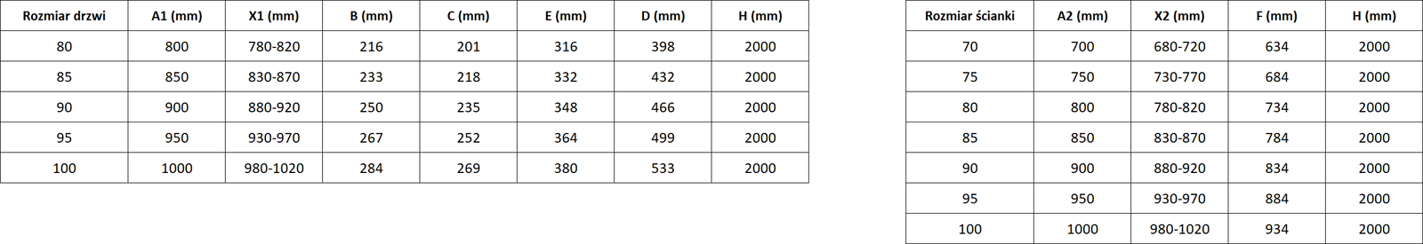 Dimensiune: 85x90 cm (uși 85 cm. pereți 90 cm)