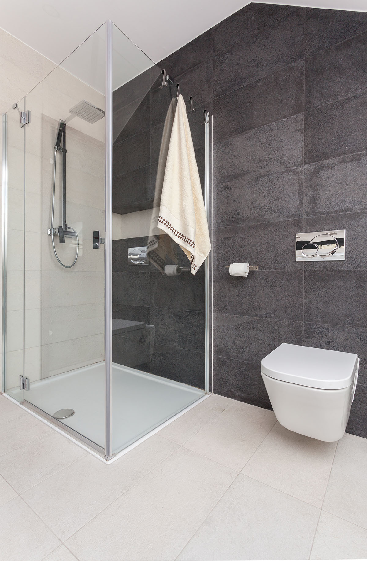 - cabine de duș de lângă perete - sunt amplasate lângă peretele băii, dar în acest caz este nevoie doar de unul. Acestea ocupă mult mai mult spațiu decât cabinele tipice de colț, deoarece „intru” mult în spațiul băii. Există multe forme diferite disponibile pe piață, inclusiv cabina walk-in.