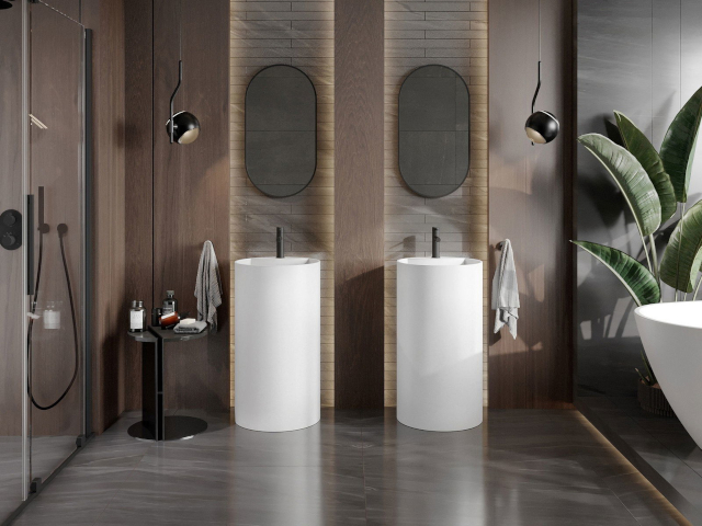 Suprafața frontală uniformă organizează compoziția peretelui, conducând privirea în sus și nu creează impresia de aglomerare. Acest lucru deosebește raftul coloană și îi oferă un avantaj față de mobilierul tradițional. Coloana de baie suspendată exploatează potențialul spațial al băii, permițând în același timp eliberarea optică a spațiului, ceea ce este un atu clar al acestei soluții. Coloana de baie unește și zonele funcționale într-un întreg coerent care arată ca și cum ar fi făcut la comandă. Desigur, cu condiția să alegi mobiliera pentru chiuvetă din aceeași colecție.